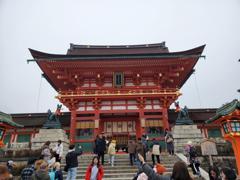 「美ね寅」という和食レストランで、昼食会でした。事前にアレルギーがあることをお伝えしていて席が決まっていたのですが、なんと目の前に浅野先生と担当編集の方々が座られました。アレルギーがあることを幸運に思う日が来ようとは。料理は美味しかったのですが、それよりなにより楽しい会話のひとときでした。この後でまわる伏見稲荷大社は、私がはじめて“アニメの聖地巡礼”をしたときにまわったところでした。そのときは「いなり、こんこん、恋いろは」という作品の舞台としてまわったのですが、その話をしたら「あれも(であいもんと同じ)ヤングエースの作品」と教えていただきました。そういうところ気にしてなかったんですよね。ちなみに、うちのリビングには「いなこん」のポスターが飾ってあります。18巻はいつもより時期があいているのですが、これは初めて出す限定版に付属するマスコットチャームの制作に時間がかかったためだそうです。ですから、19巻は割とすぐ出るそうです。あと、前日に言った「もちづきさん」コラボカフェの話とか、どんな音楽を聴くのか尋ねられて80年代の音楽とかを熱く語ってしまった気がします。何をやっているんだ、俺は。